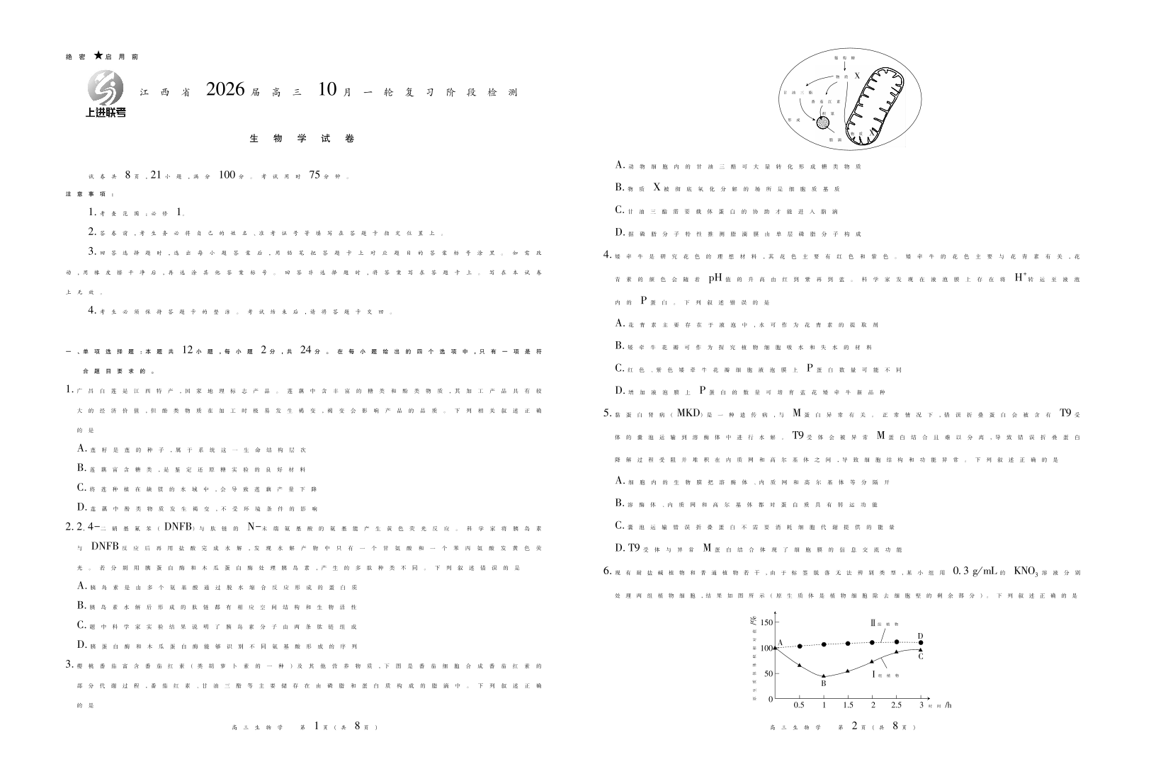 高三生物--江西省上进联考2026届高三10月一轮复习阶段检测