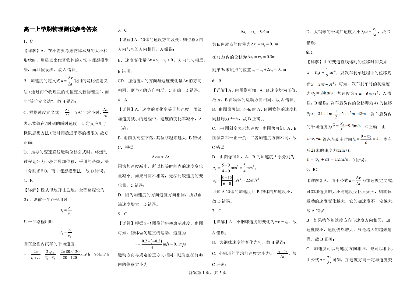 高一物理答案--山东省聊城市某校2025-2026学年高一上学期第一次月考