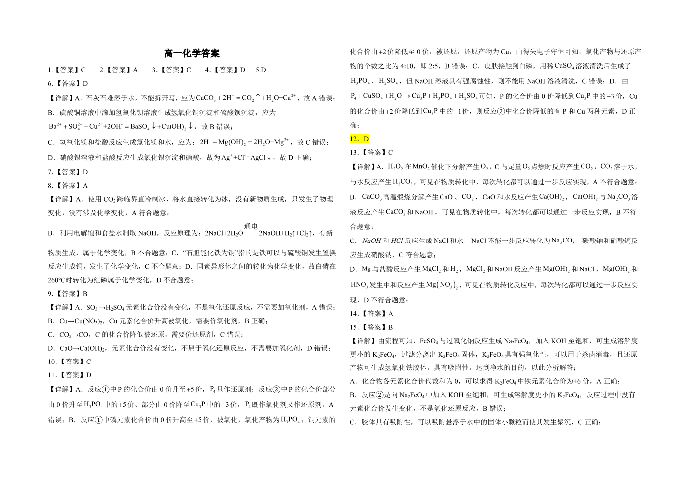 高一化学答案--山东省聊城市某校2025-2026学年高一上学期第一次月考
