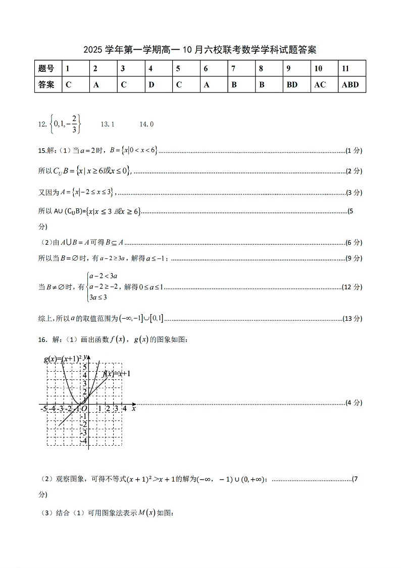 高一数学答案--浙江省六校联盟2025-2026学年高一上学期10月月考