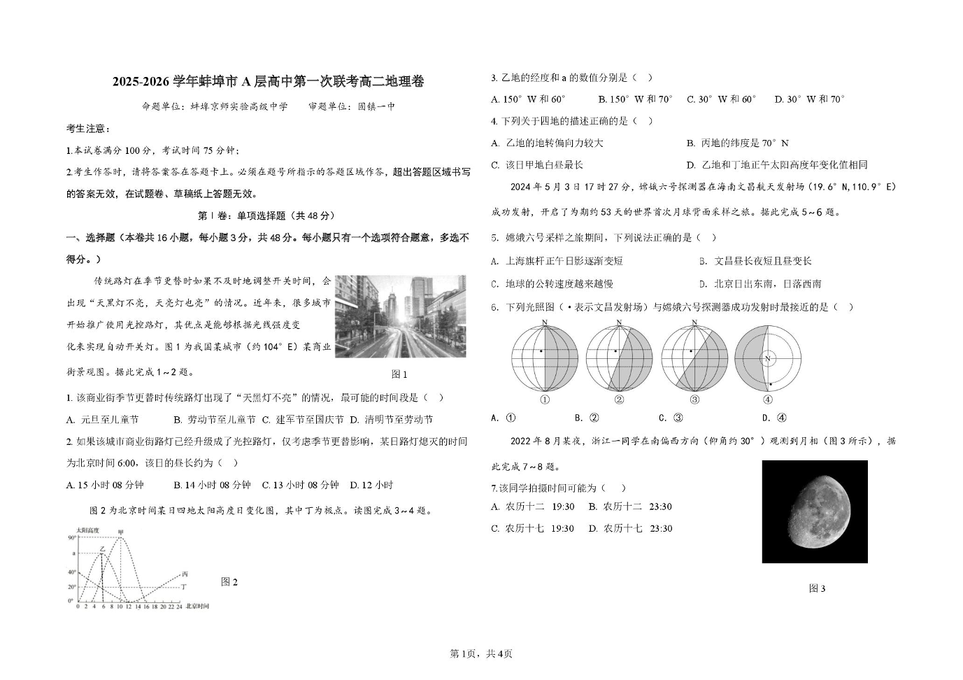 高二地理+答案--安徽省蚌埠市A层高中2025-2026学年高二上学期10月月考