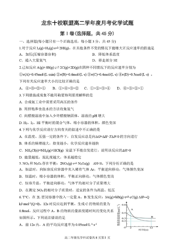 高二化学+答案--黑龙江省龙东十校联盟2025-2026学年高二上学期10月月考