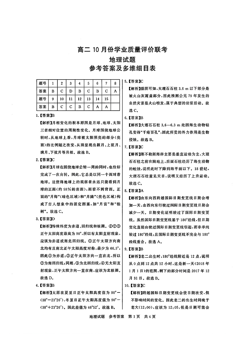 高二地理答案--山西省2025-2026学年高二T8联考10月份学业质量评价联考