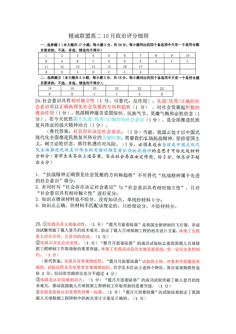 高二政治答案--浙江精诚联盟2025-2026学年高二上学期10月联考