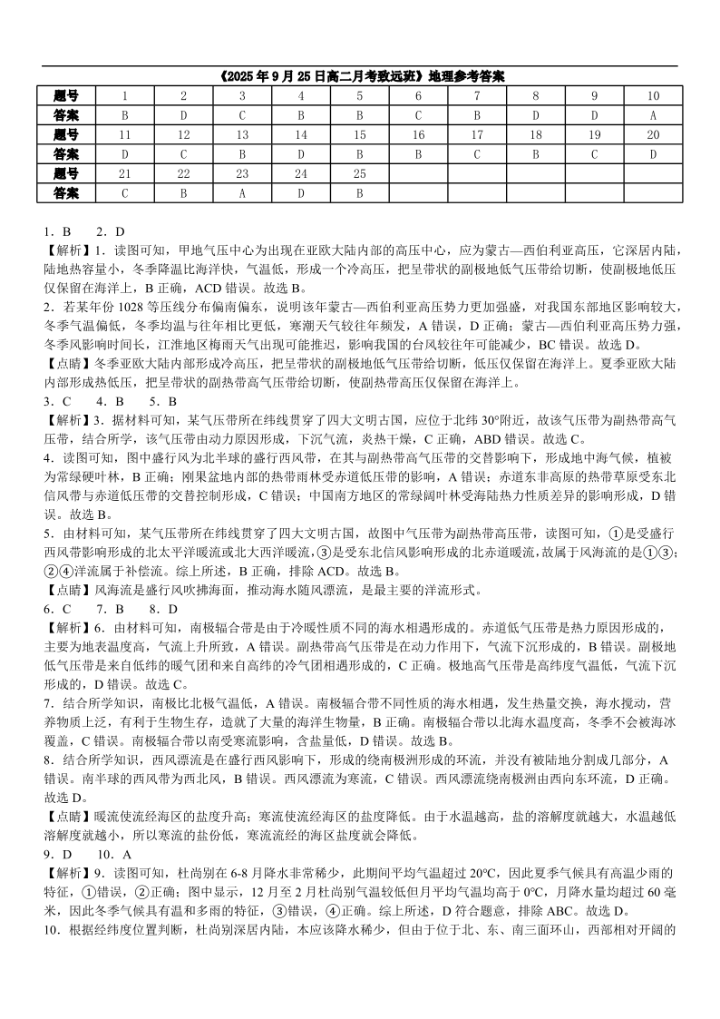 高二地理(致远班)答案--黑龙江省牡丹江市第一高级中学2025-2026学年高二上学期9月月考
