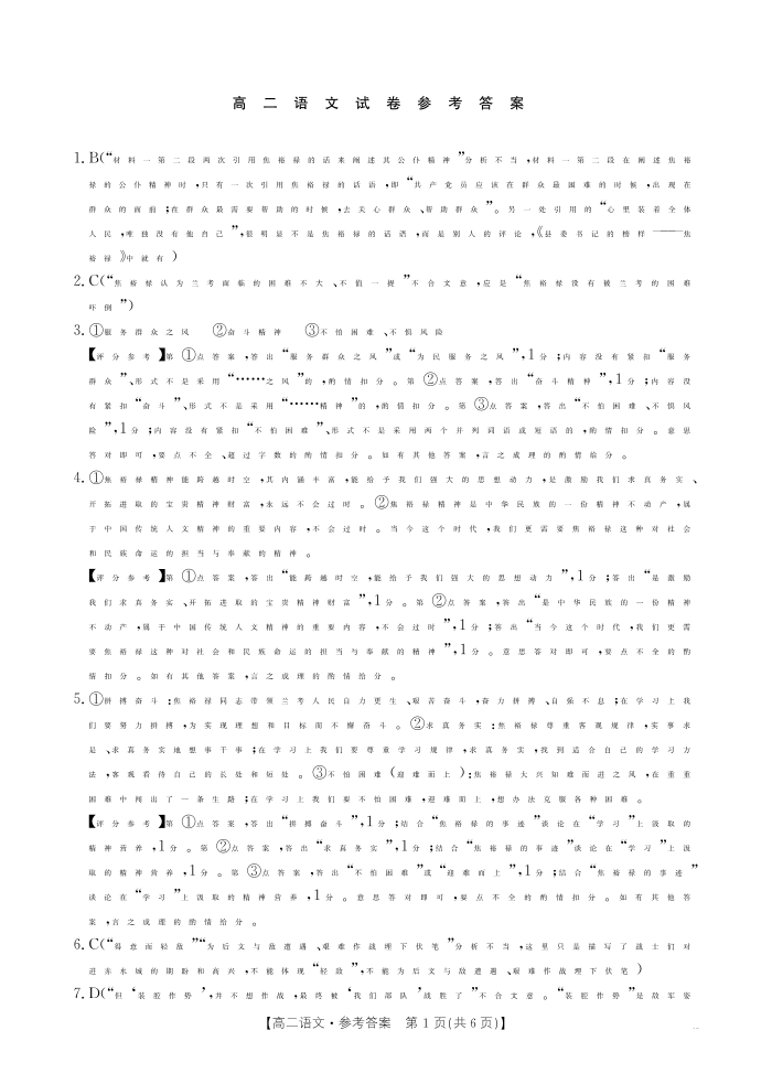 高二语文答案--江西省2025-2026学期高二上学期10月联考
