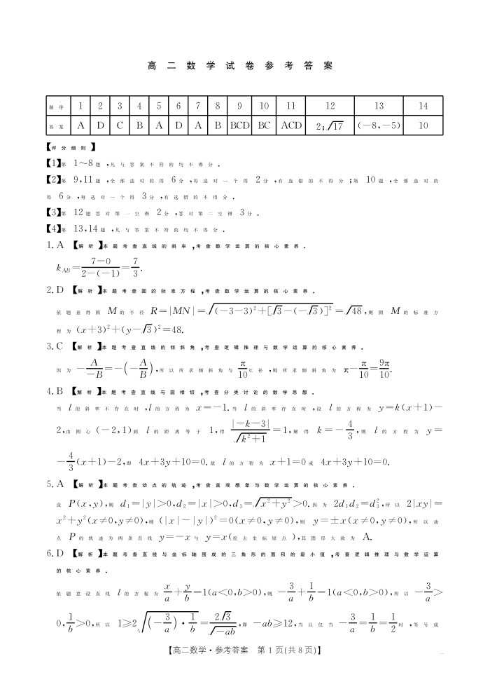 高二数学答案--江西省2025-2026学期高二上学期10月联考