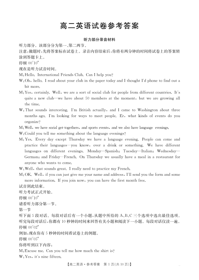 高二英语答案--江西省2025-2026学期高二上学期10月联考