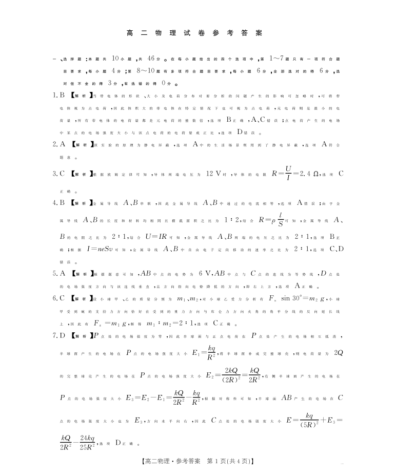 高二物理答案--江西省2025-2026学期高二上学期10月联考