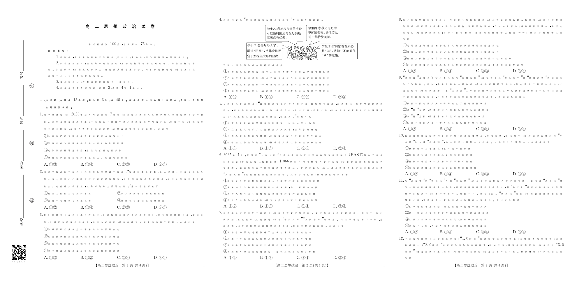 高二政治--江西省2025-2026学期高二上学期10月联考