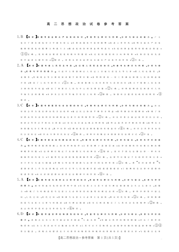 高二政治答案--江西省2025-2026学期高二上学期10月联考