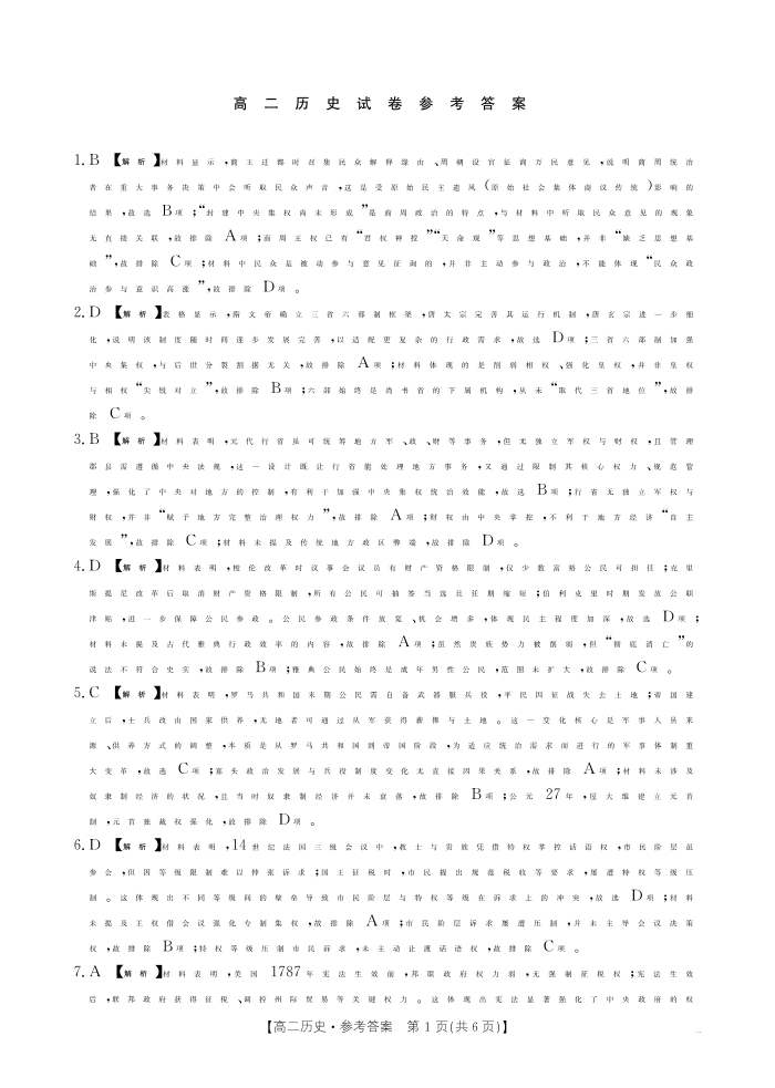 高二历史答案--江西省2025-2026学期高二上学期10月联考