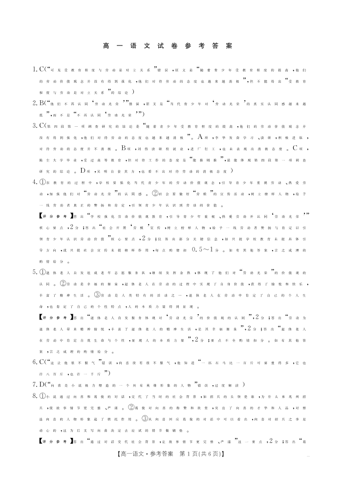 高一语文答案--江西省2025-2026学期高一上学期10月联考