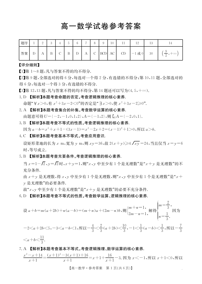 高一数学答案--江西省2025-2026学期高一上学期10月联考