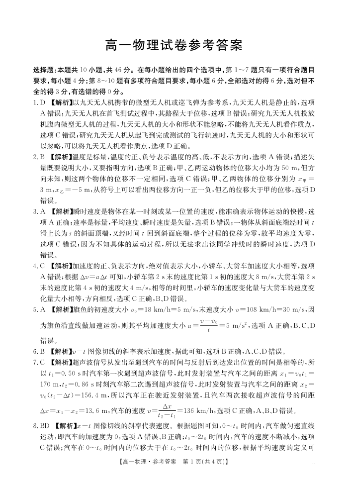 高一物理答案--江西省2025-2026学期高一上学期10月联考