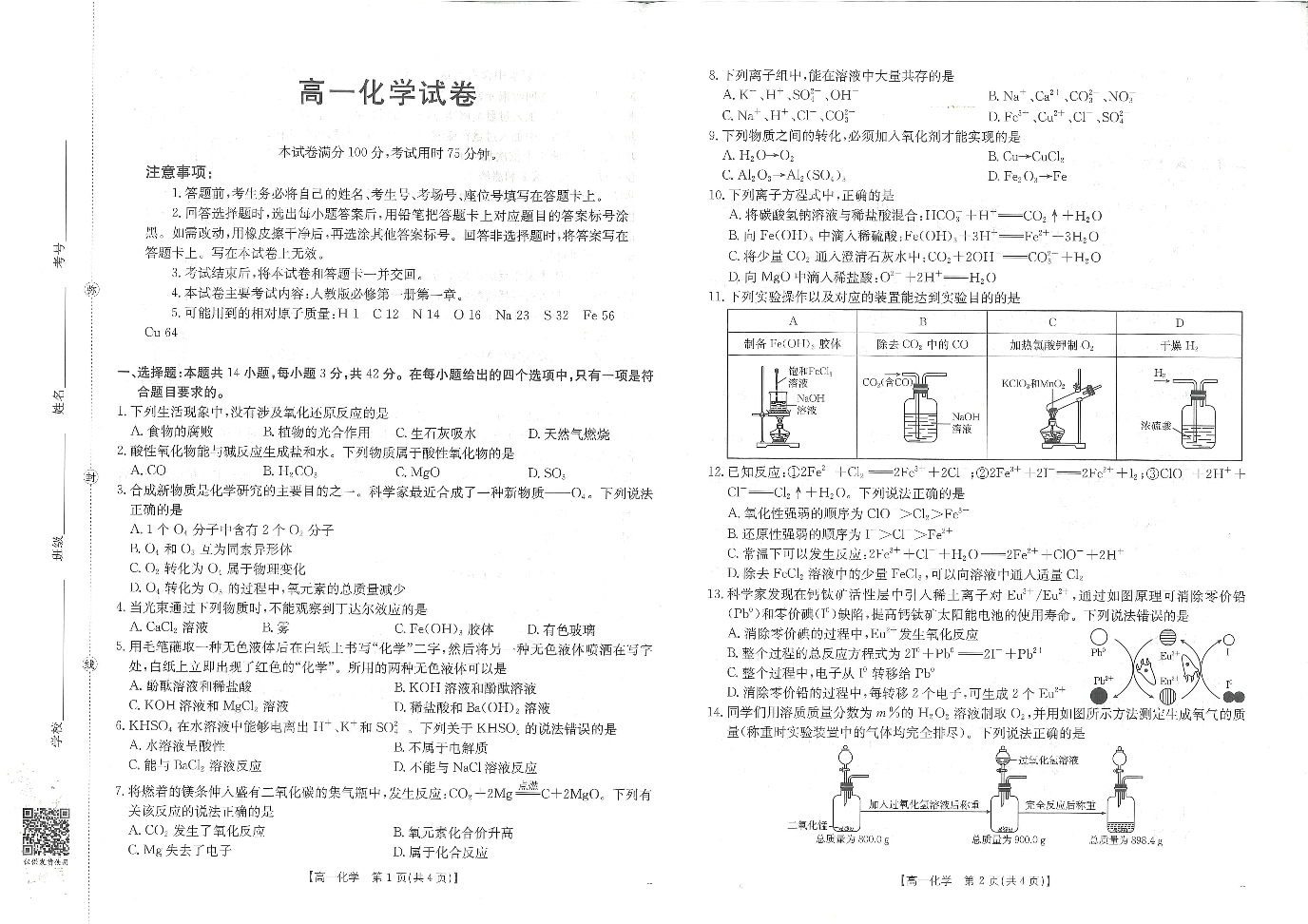 高一化学--江西省2025-2026学期高一上学期10月联考