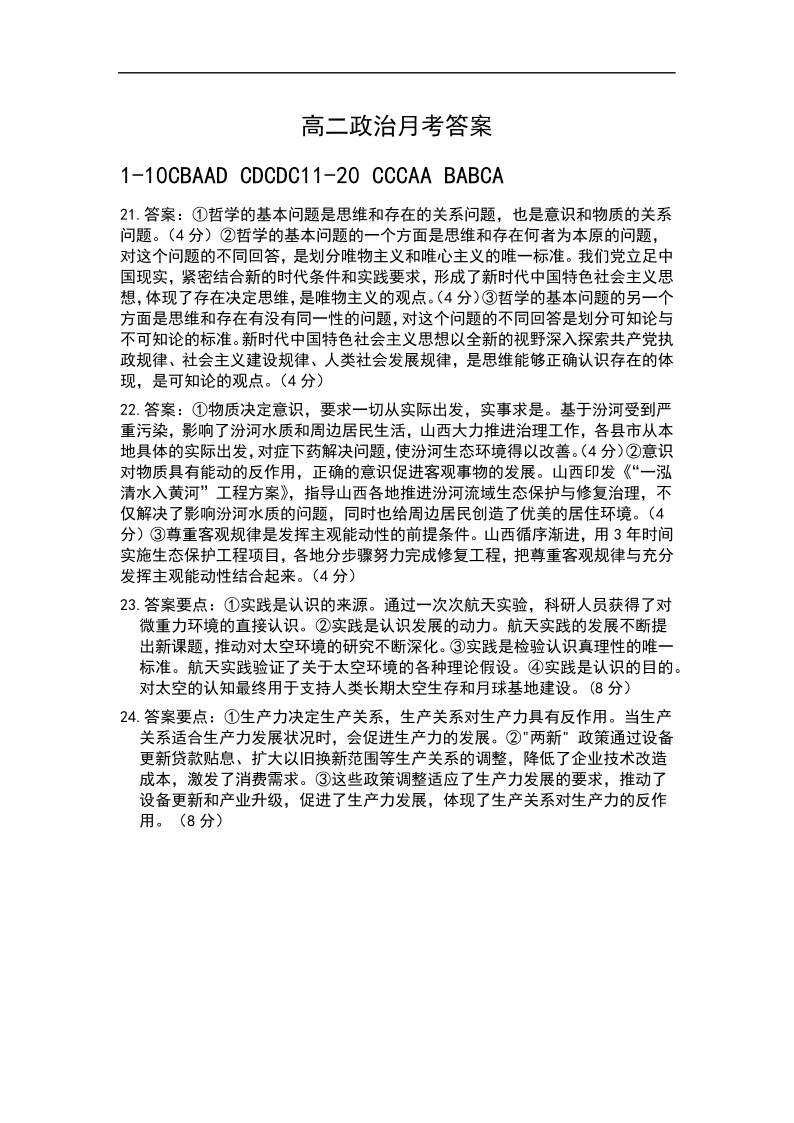 高二政治答案--江西省上饶市余干县私立蓝天中学2025-2026学年高二上学期第一次月考