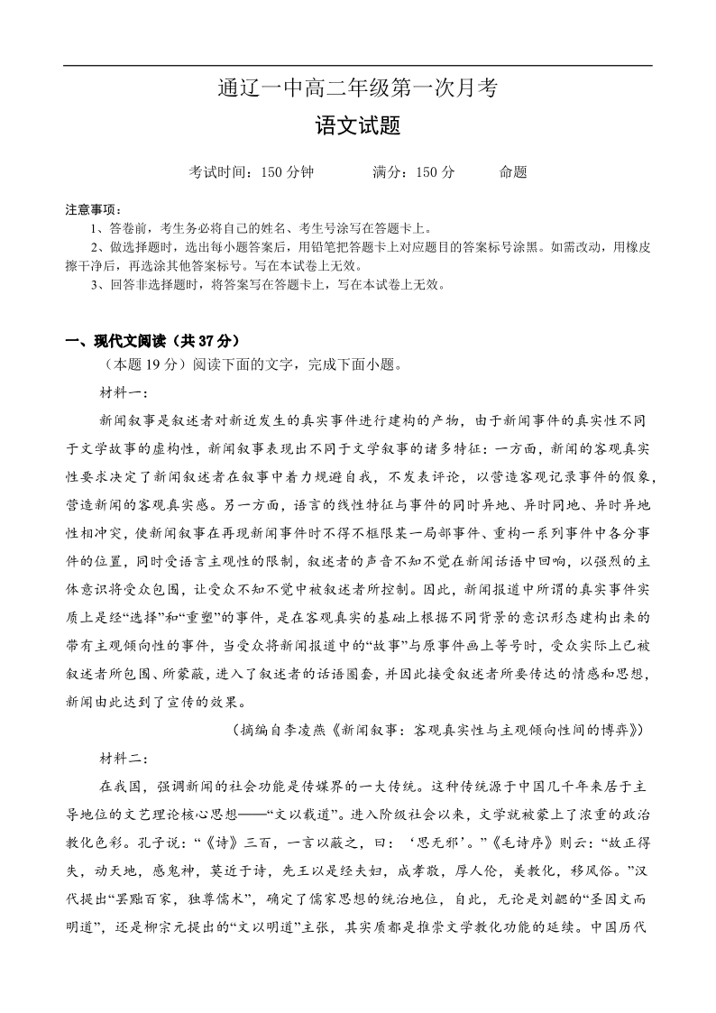 高二语文答案--内蒙古通辽市第一中学2025-2026学年高二上学期第一次月考