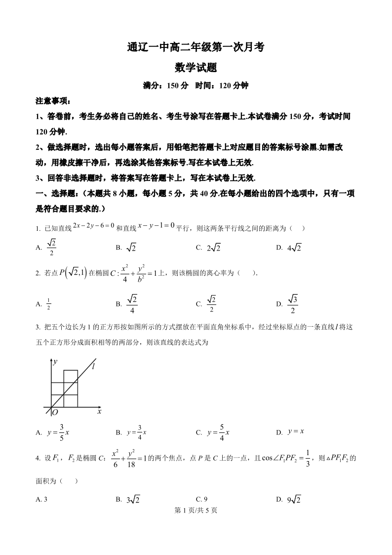 高二数学(特优班)(原卷版)--内蒙古通辽市第一中学2025-2026学年高二上学期第一次月考