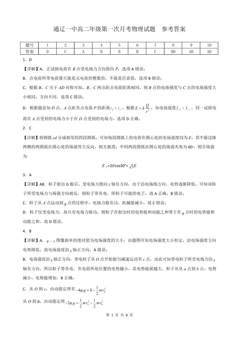 高二物理(特优班)答案--内蒙古通辽市第一中学2025-2026学年高二上学期第一次月考