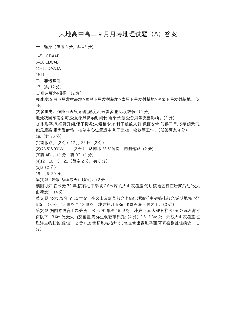 高二地理A卷答案--山西省朔州市怀仁市大地高中学校2025-2026学年高二上学期第一次月考
