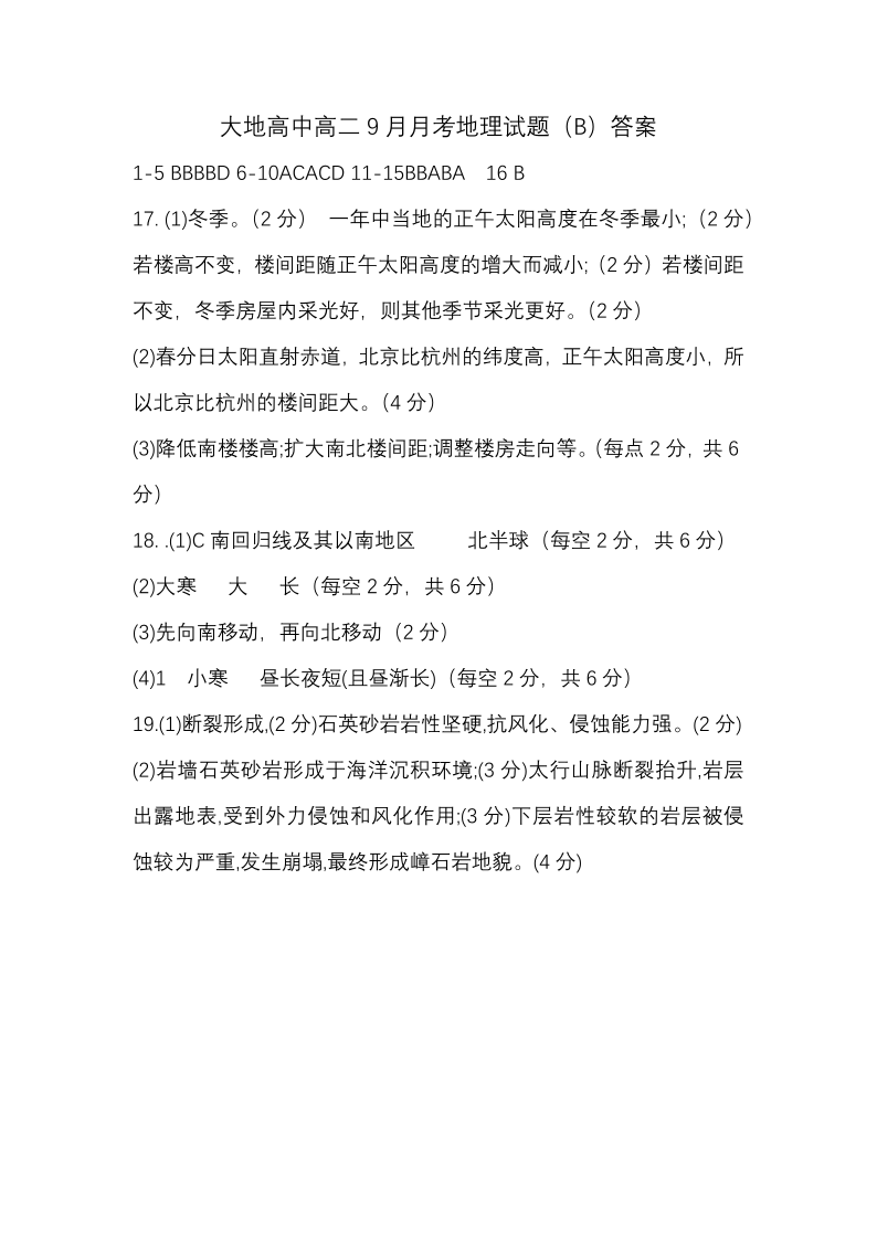 高二地理B卷答案--山西省朔州市怀仁市大地高中学校2025-2026学年高二上学期第一次月考