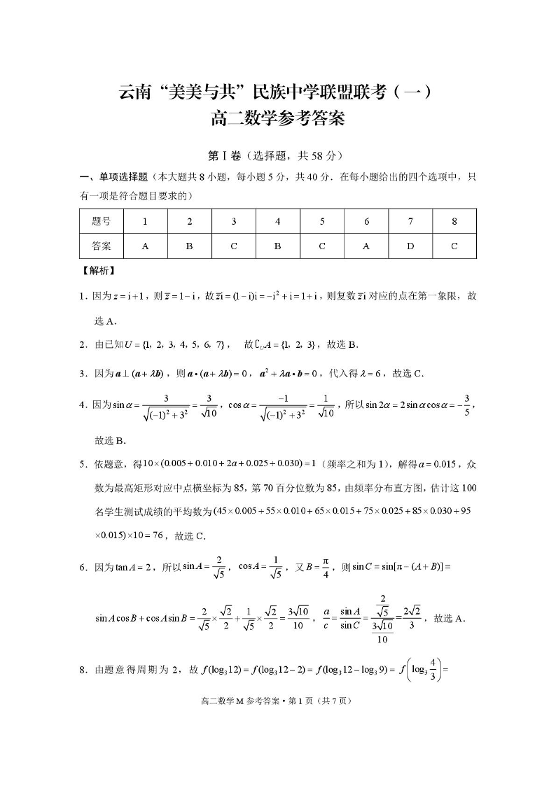 高二数学答案--云南省“美美与共”民族中学联盟2025-2026学年高二上学期联考(一)