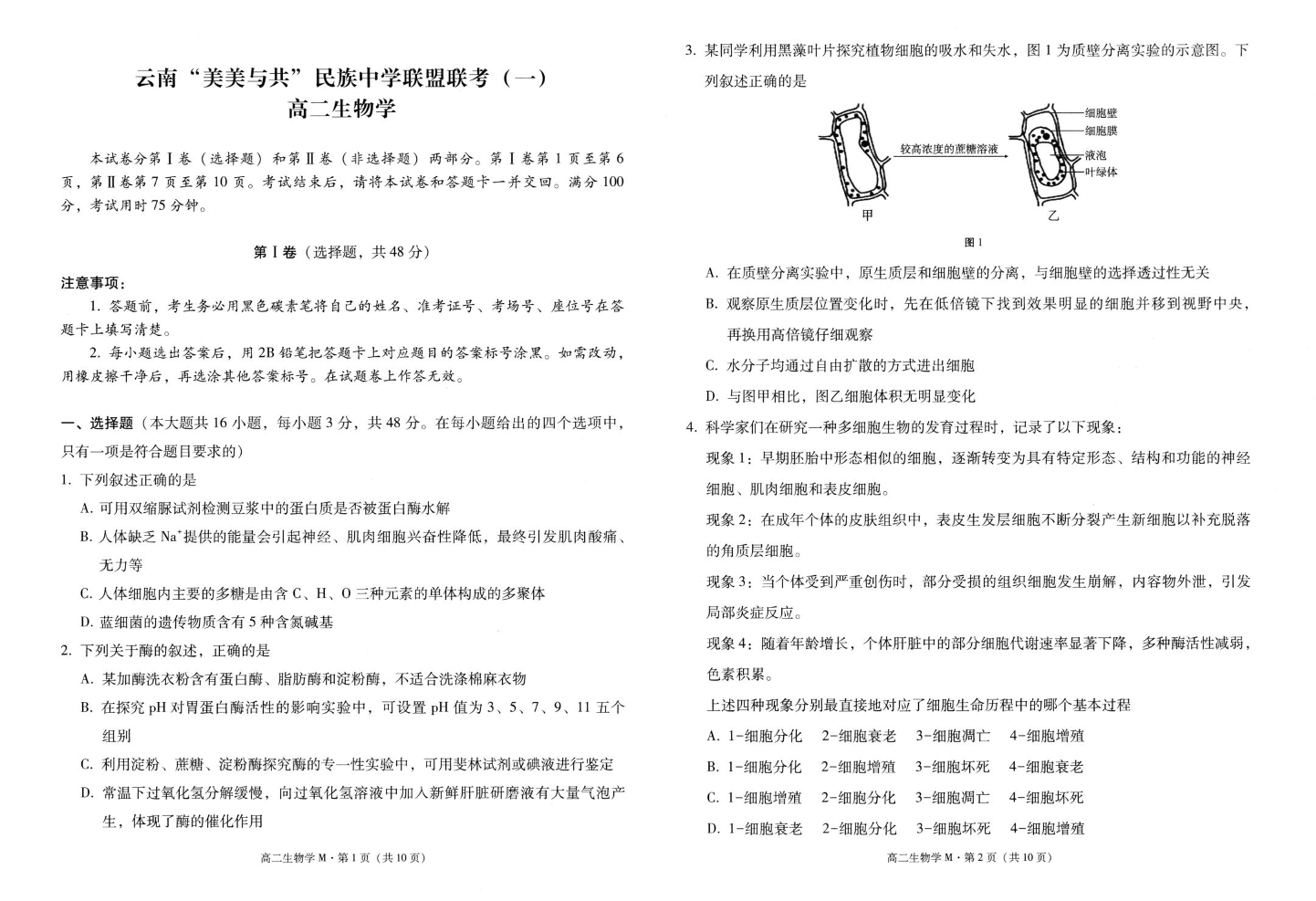 高二生物--云南省“美美与共”民族中学联盟2025-2026学年高二上学期联考(一)