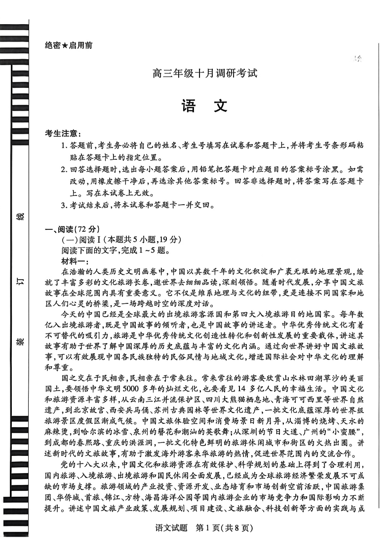 高三语文--安徽天一大联考豫皖联考2026届高三上学期十月调研考试