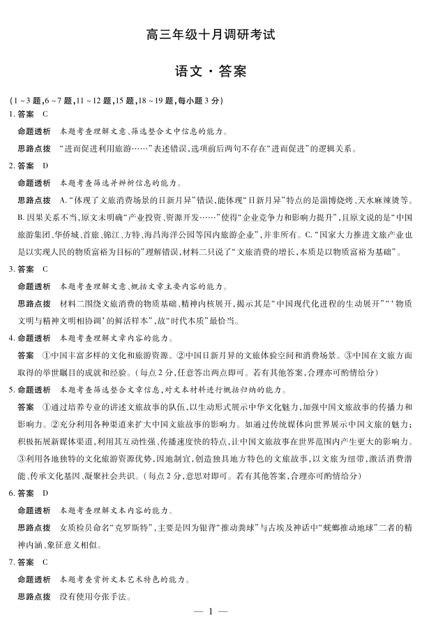 高三语文答案--安徽天一大联考豫皖联考2026届高三上学期十月调研考试