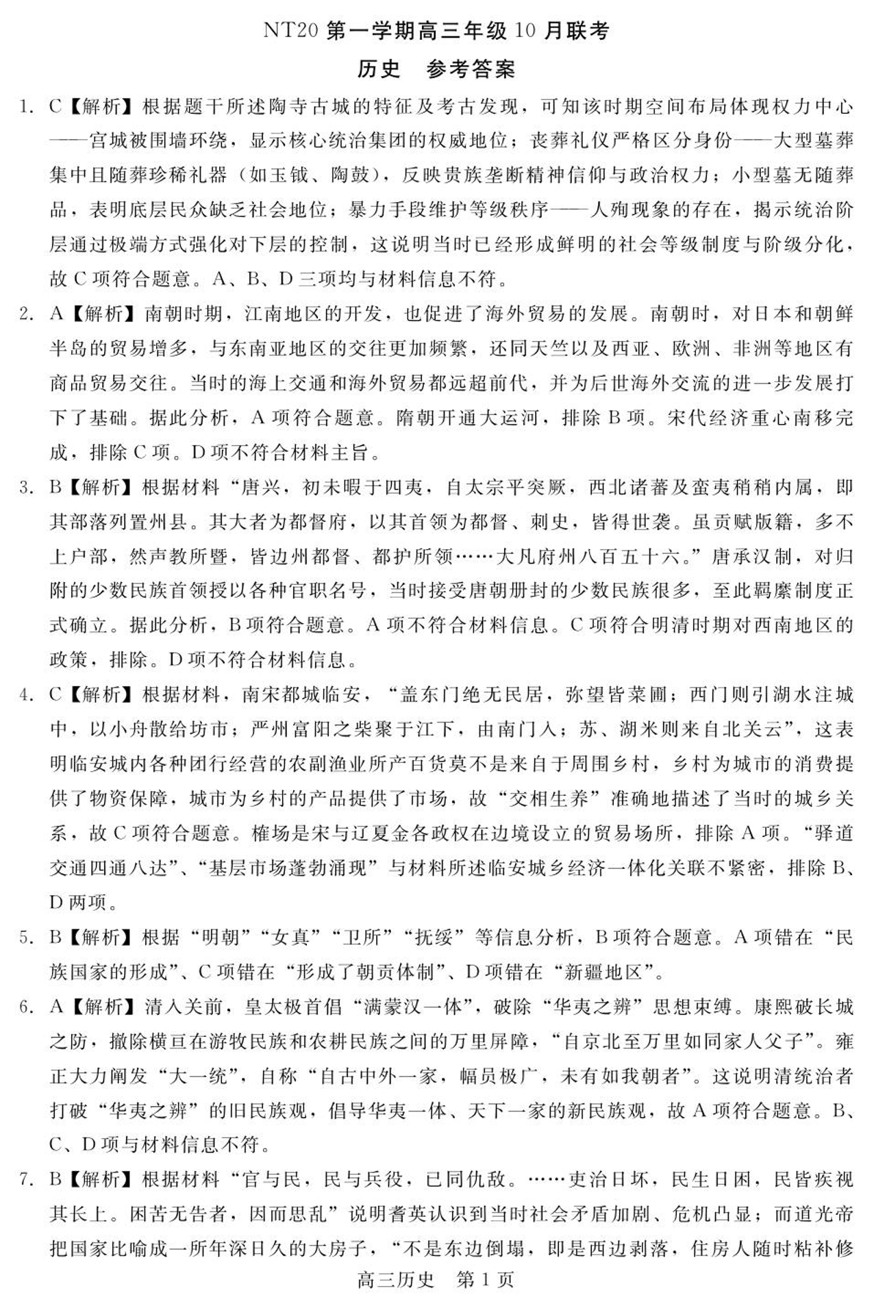 高三历史答案--河北省NT教育2026届高三上学期10月联考