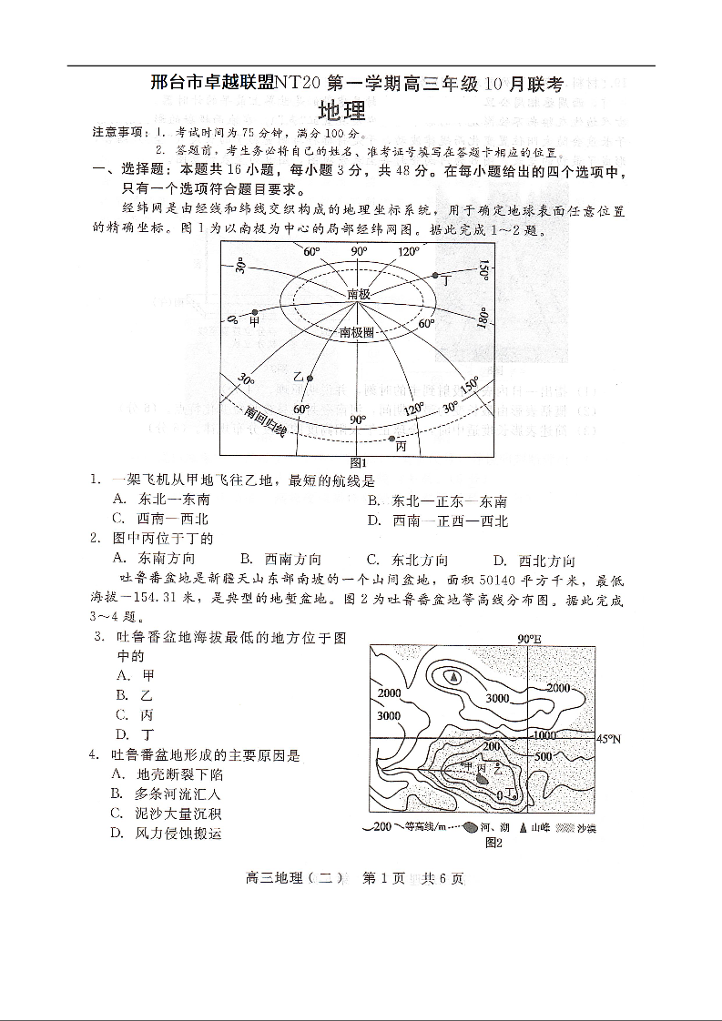 高三地理--河北省NT教育2026届高三上学期10月联考