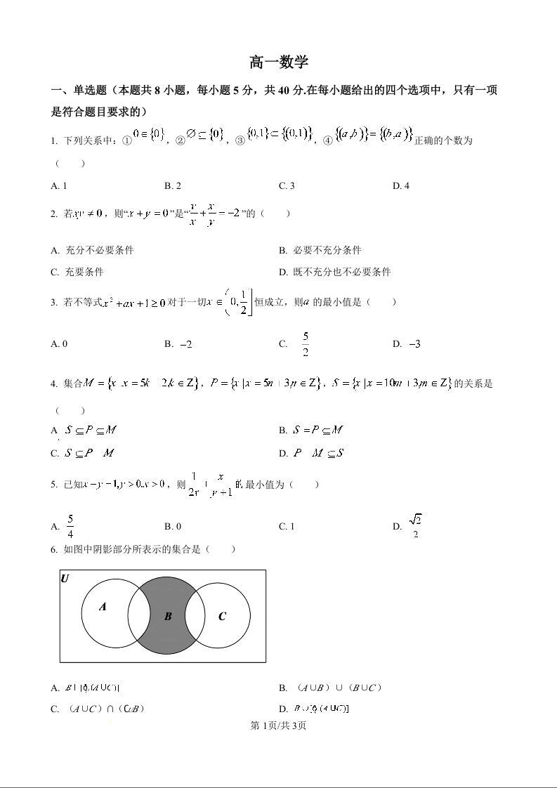 高一数学(原卷版)--吉林省通化市梅河口市第五中学2025-2026学年高一上学期10月月考