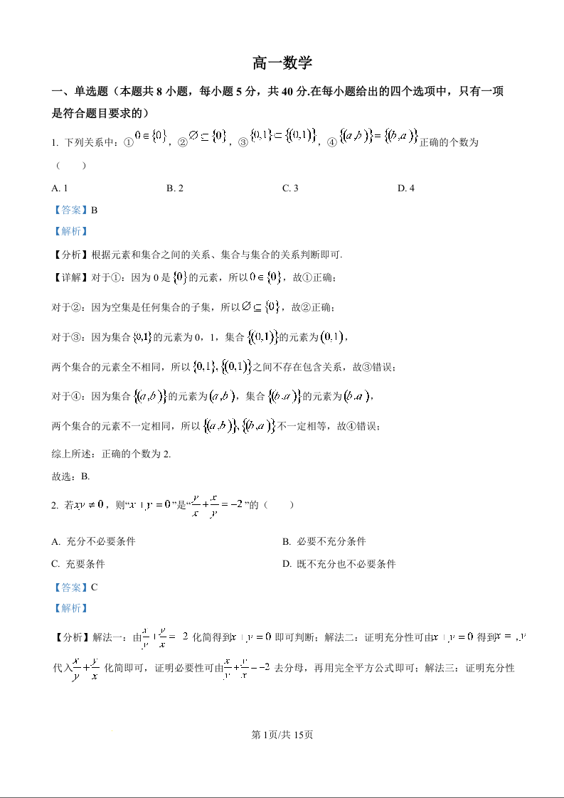 高一数学(精品解析版)--吉林省通化市梅河口市第五中学2025-2026学年高一上学期10月月考