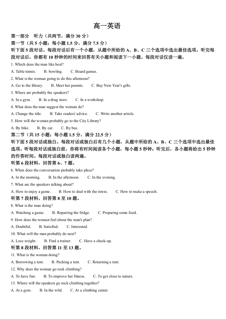 高一英语+答案--吉林省通化市梅河口市第五中学2025-2026学年高一上学期10月月考