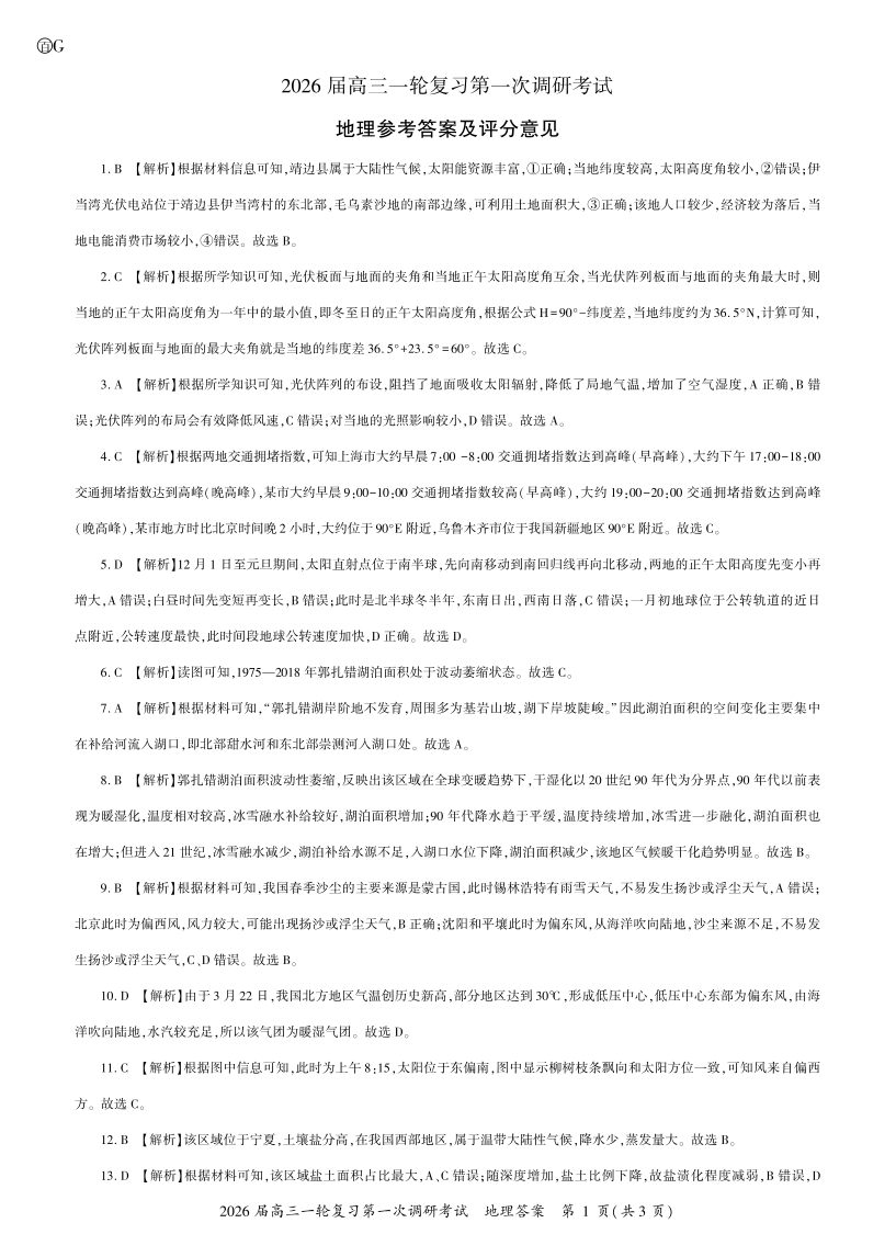 高三地理答案--百师联盟2026届高三上学期第一次调研考试(10月)