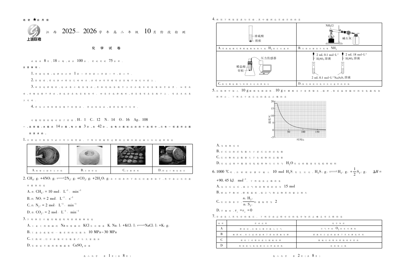 高二化学--江西省上进联考2025—2026学年高二年级10月阶段检测