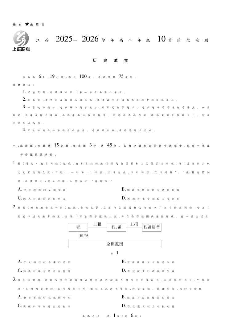 高二历史--江西省上进联考2025—2026学年高二年级10月阶段检测
