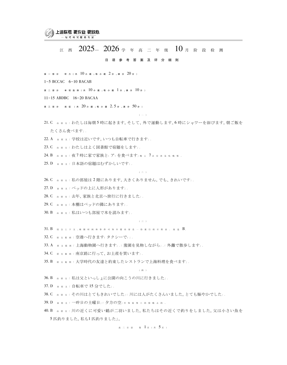 高二日语答案--江西省上进联考2025—2026学年高二年级10月阶段检测
