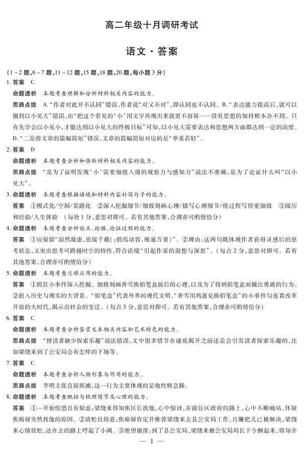 高二语文答案--安徽省天一大联考2025-2026学年高二年级10月调研考试