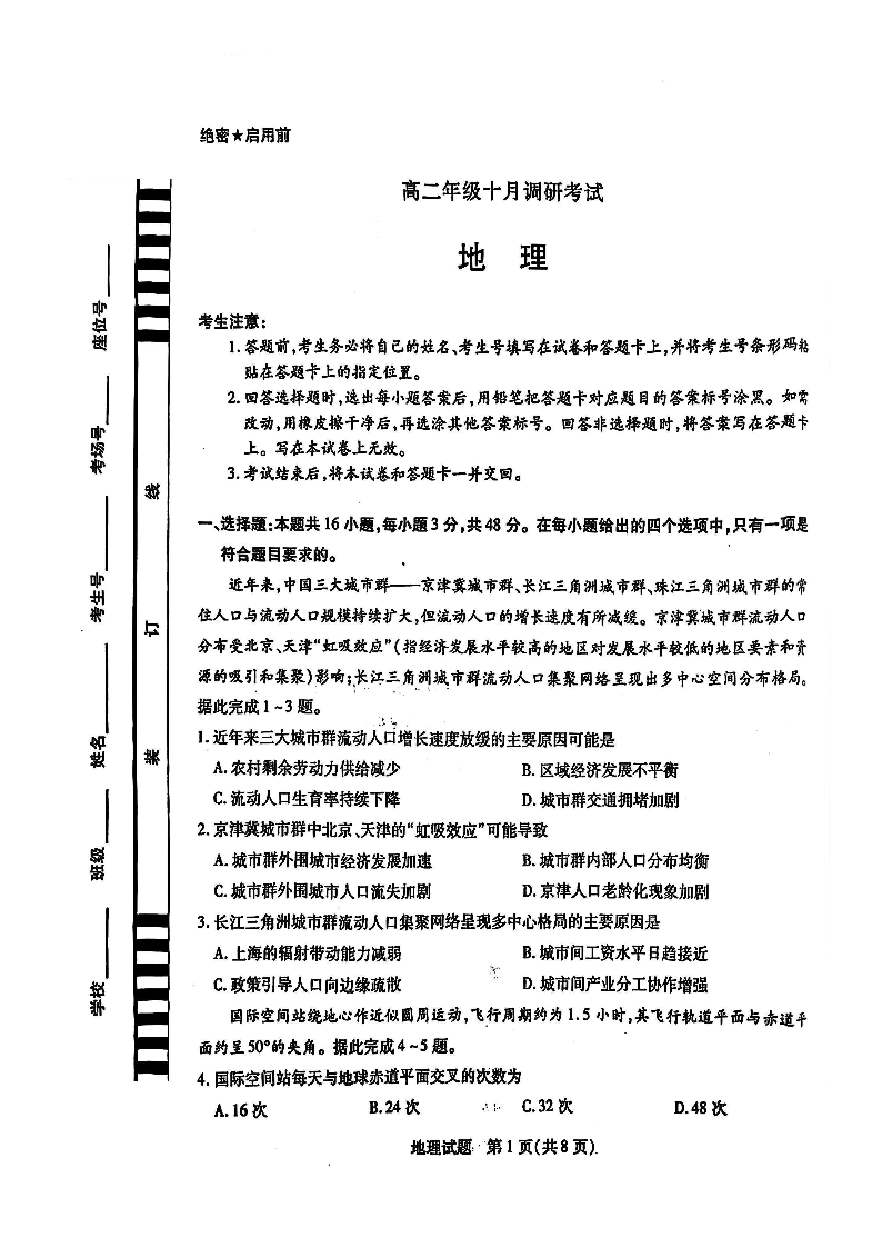 高二地理--安徽省天一大联考2025-2026学年高二年级10月调研考试