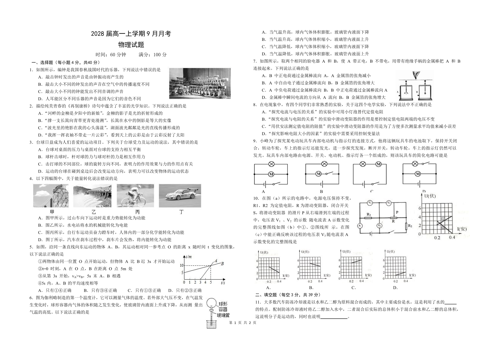 高一物理--四川省眉山市仁寿第一中学校(南校区)2025-2026学年高一上学期9月月考