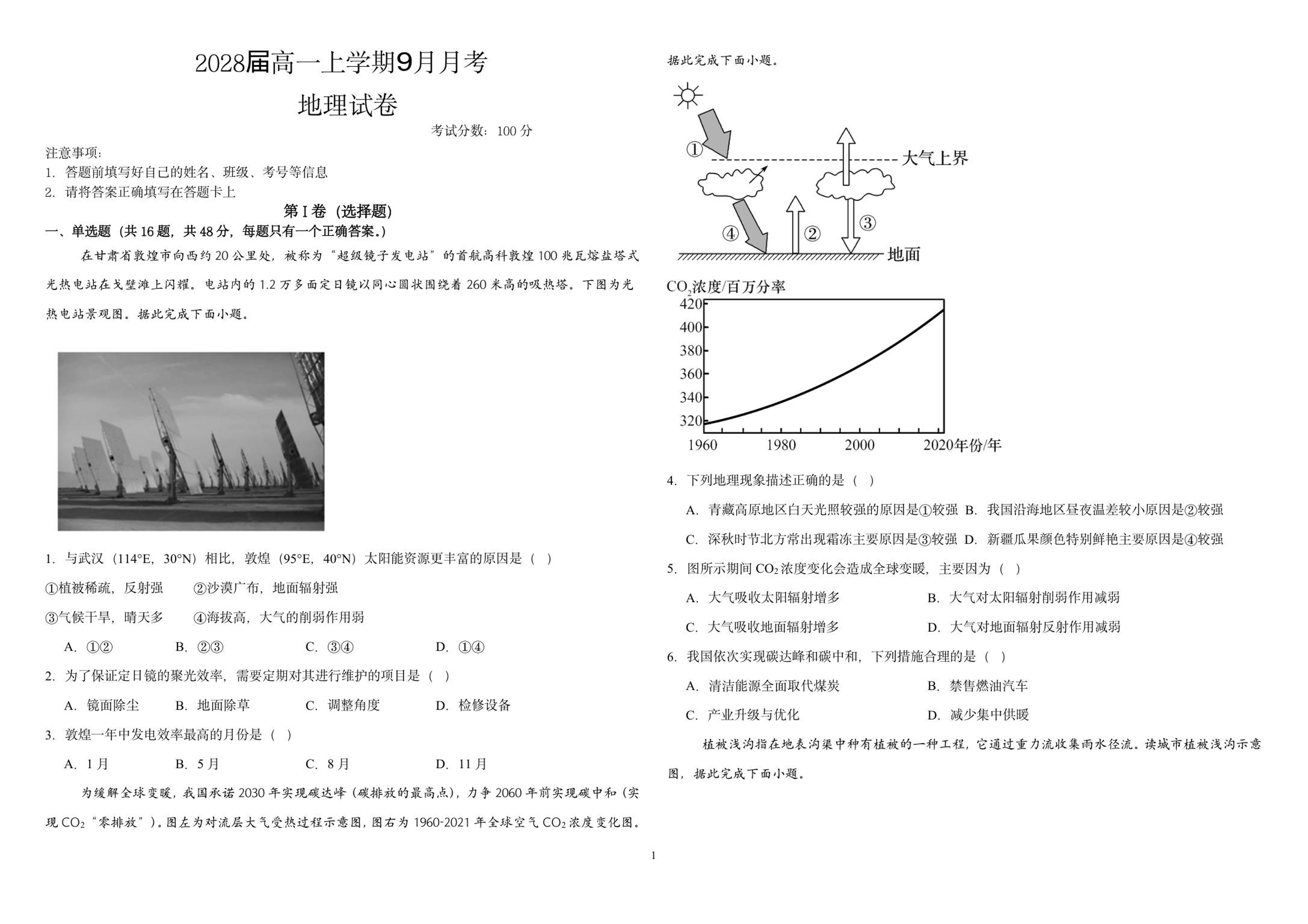 高一地理--四川省眉山市仁寿第一中学校(南校区)2025-2026学年高一上学期9月月考