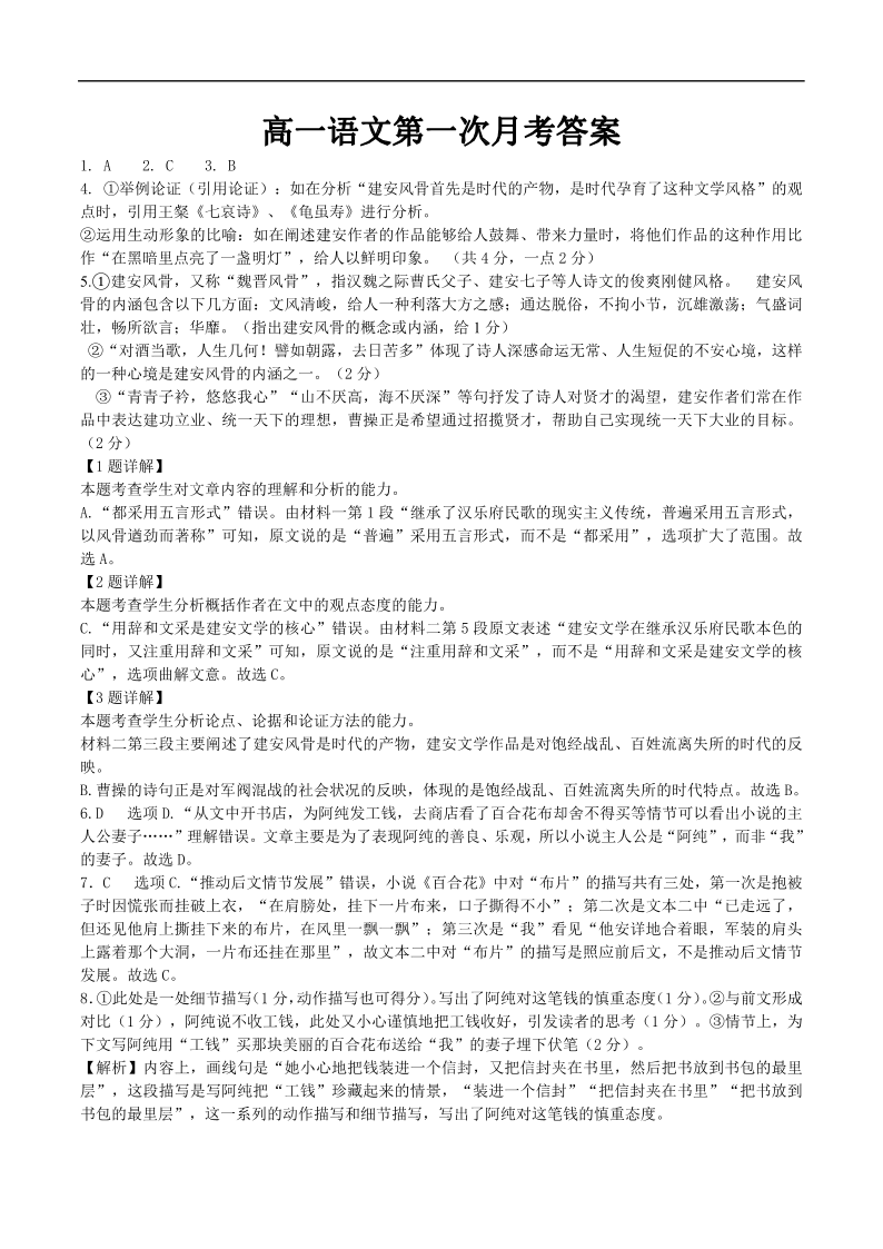 高一语文答案--陕西省汉中市西乡县第一中学2025-2026学年高一上学期9月月考