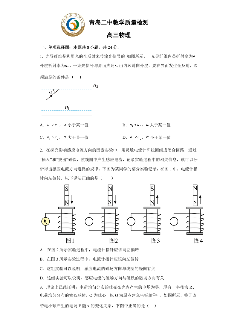 高三物理+答案--山东省青岛市第二中学2022-2023学年高三上学期12月月考