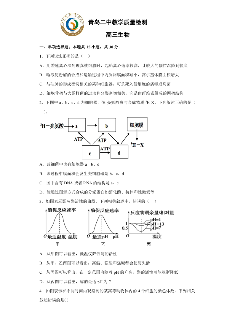 高三生物+答案--山东省青岛市第二中学2022-2023学年高三上学期12月月考