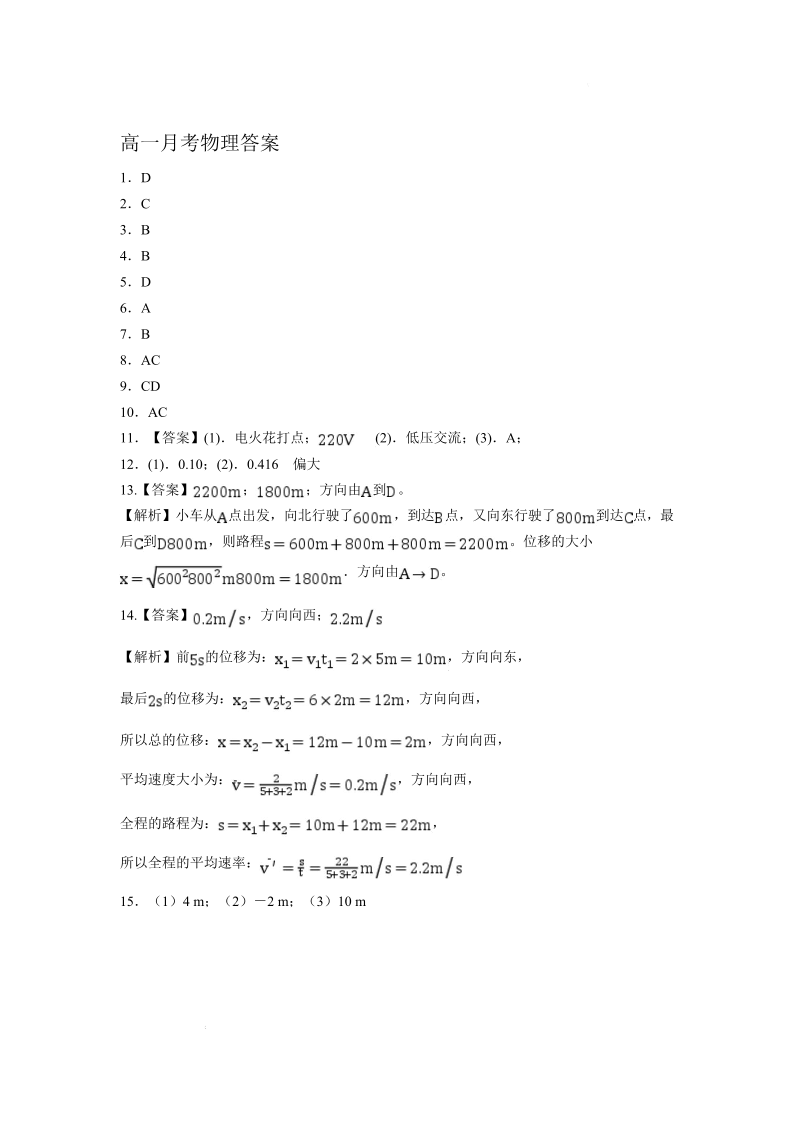 高一物理答案--江西省上饶市余干县私立蓝天中学2025-2026学年高一上学期第一次月考