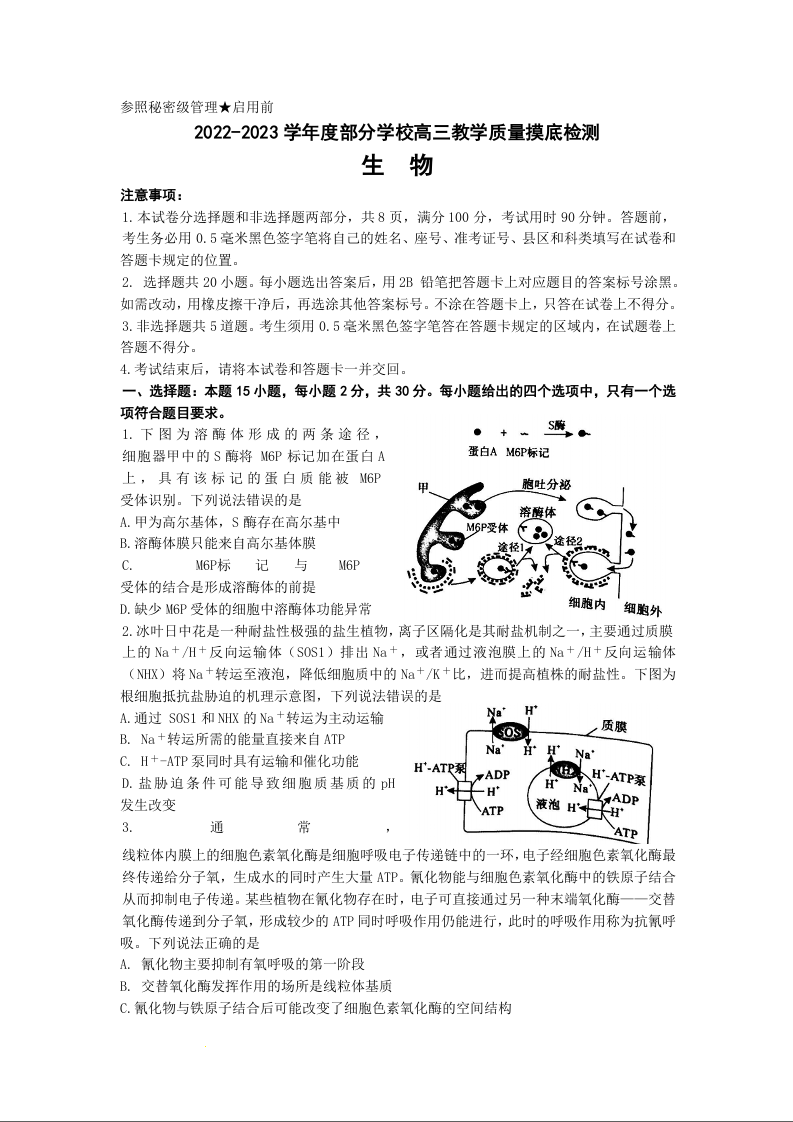 高三生物+答案--山东省淄博市部分学校2022-2023学年高三上学期12月教学质量摸底检测