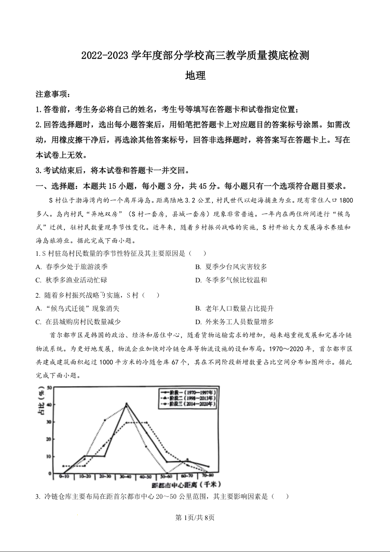 高三地理+答案--山东省淄博市部分学校2022-2023学年高三上学期12月教学质量摸底检测