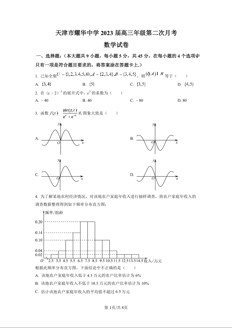 高三数学+答案-天津市耀华中学2023高三上学期11月第二次月考